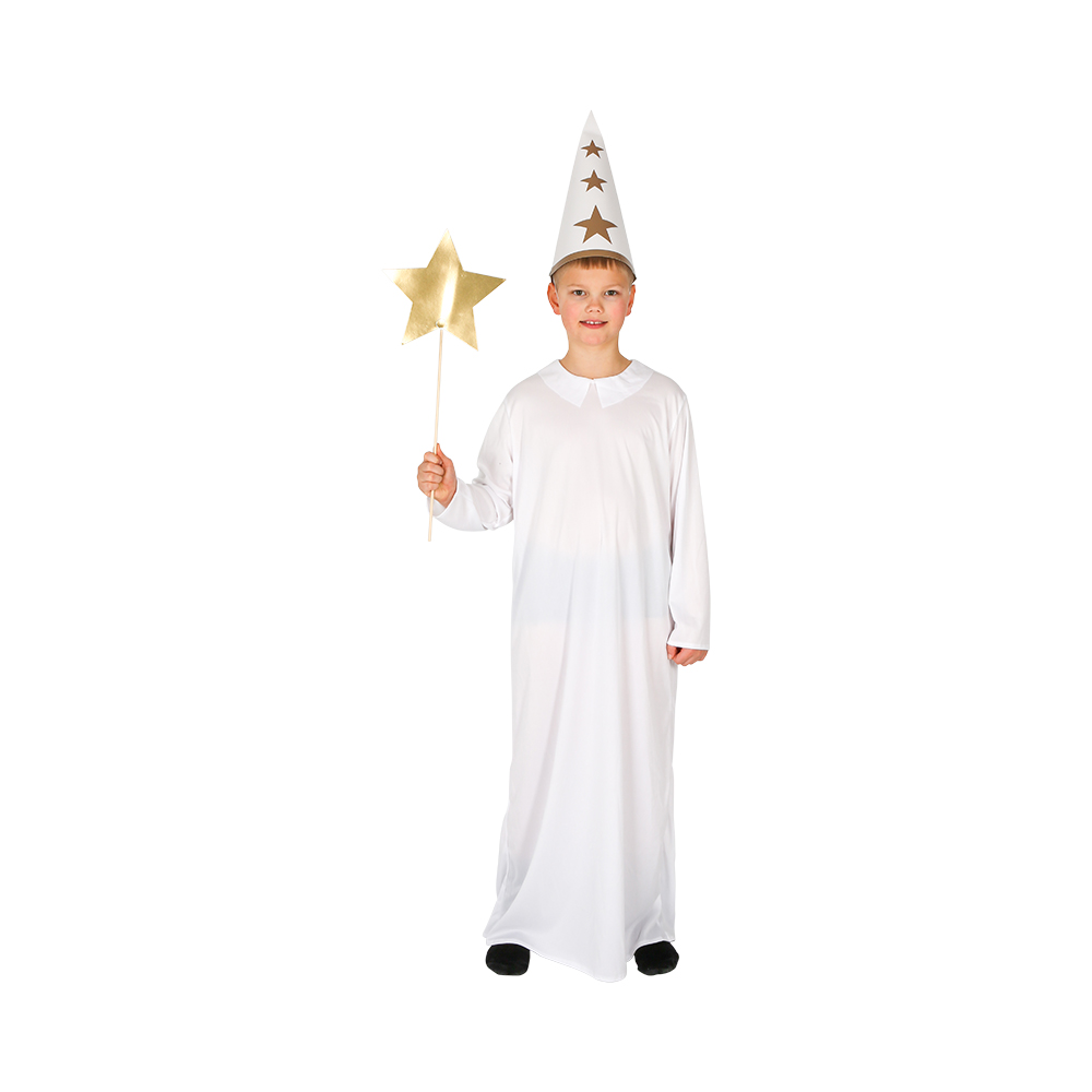 Der Sternenjunge ist ein wesentlicher Bestandteil von Lucia. Mit diesem Set können Sie das klassische weiße Kostüm und den zeitlosen Look ganz einfach nachstellen. Kombinieren Sie dazu ein weißes langes Hemd und eine breite goldene Schärpe um die Taille, um den Look zu vervollständigen.