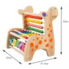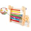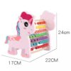 Het telraam wordt geleverd in twee schattige modellen; eenhoorn met roze tinten en giraf met gele tinten. Perfect om je kind te laten oefenen met tellen en het herkennen van vormen en kleuren.