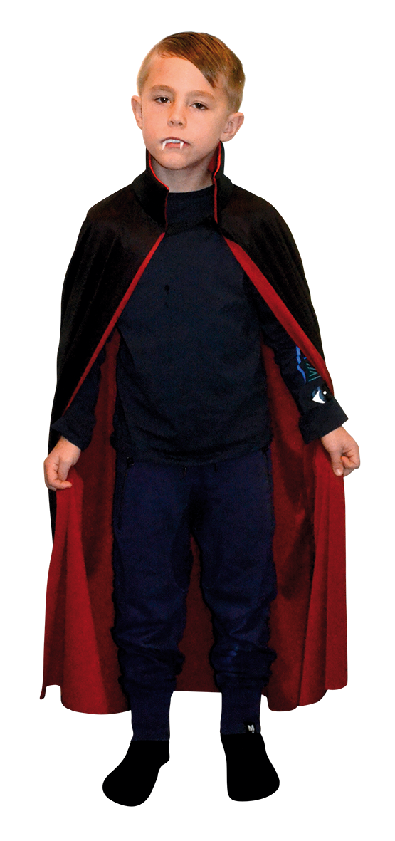 Creëer een stijlvolle en enge look met de Dracula Cape Black and Red – een klassieke vampiermantel waar alle kleine spoken en heksen dol op zullen zijn!