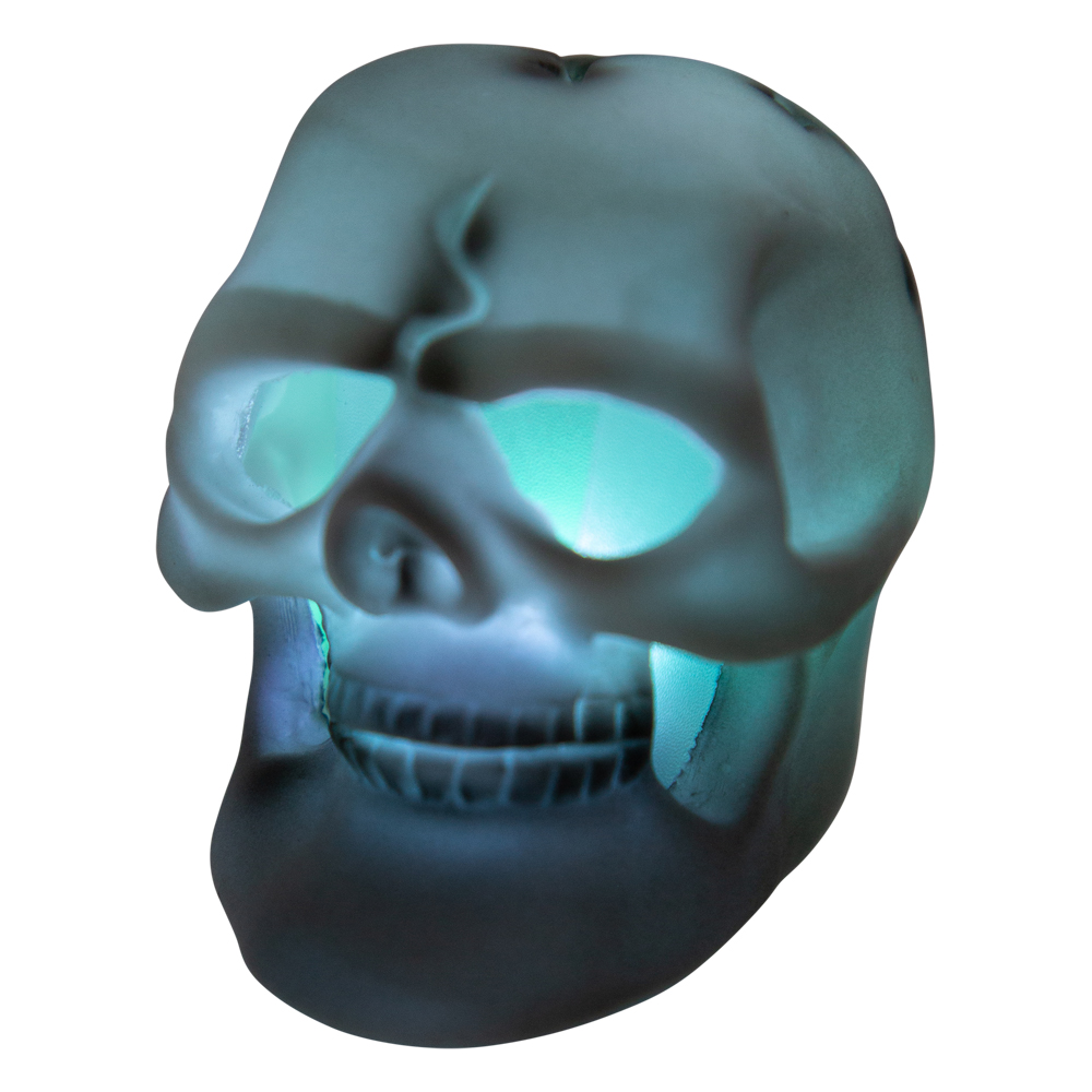Deze oplichtende schedel is een leuke toevoeging aan een kindertafel voor Halloween (met toezicht) of een opvallende decoratie voor feestjes met een volwassen thema. Combineer hem met kandelaars, spinnenwebben en andere enge details voor een complete Halloweensfeer.