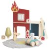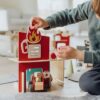 De speelwereld kan beginnen met rollen als politieagent, brandweerman of paramedicus, maar de verbeelding van het kind kan het overnemen en de wereld onbeperkt uitbreiden. De Micki Rescue Speelwereld bevat: vijf muren, twee figuren, een ladder, een boom, twee verkeersborden, een auto, vier magneten (vuur, rooster, brandblusser en medische tas) en een driedelig vilten speelkleed (rotonde).