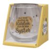 Glazen beker zonder voet met tekst. geleverd in een open geschenkdoos. Vaatwasmachinebestendig, maar voor de langste houdbaarheid van glas en print wordt handwas aanbevolen.