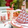 Tafelschijf met rivierkreeftjes – Grote papieren bekers met rivierkreeftjes erop. Perfect voor de rivierkreeftschotel.