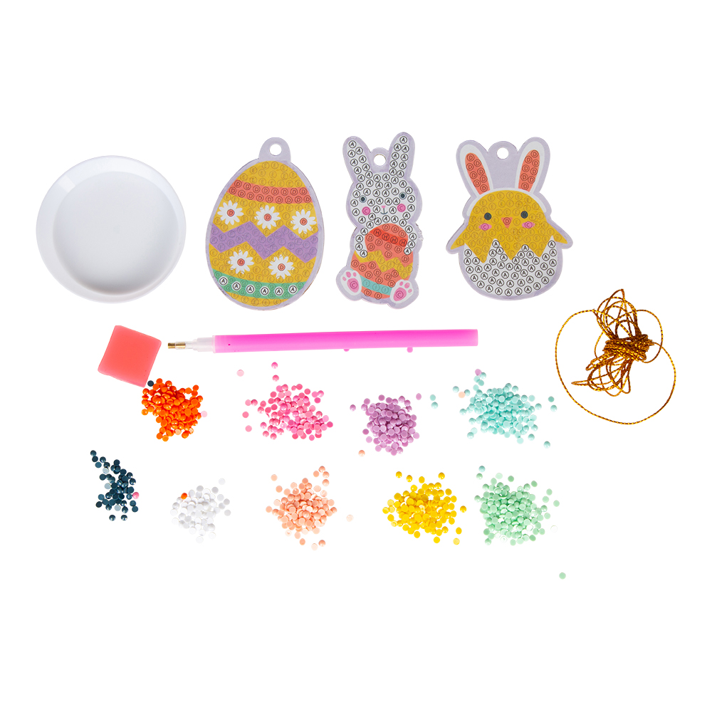 Skapa ditt eget glittrande påskpyssel med detta roliga diamond painting-kit! Här får du möjlighet att göra tre dekorativa påskikoner som passar perfekt att hänga i påskriset, i ett fönster eller som en del av din påskdekoration. Pysslet är både avkopplande och kreativt, och passar lika bra för barn som för vuxna som vill skapa något fint till påsken.