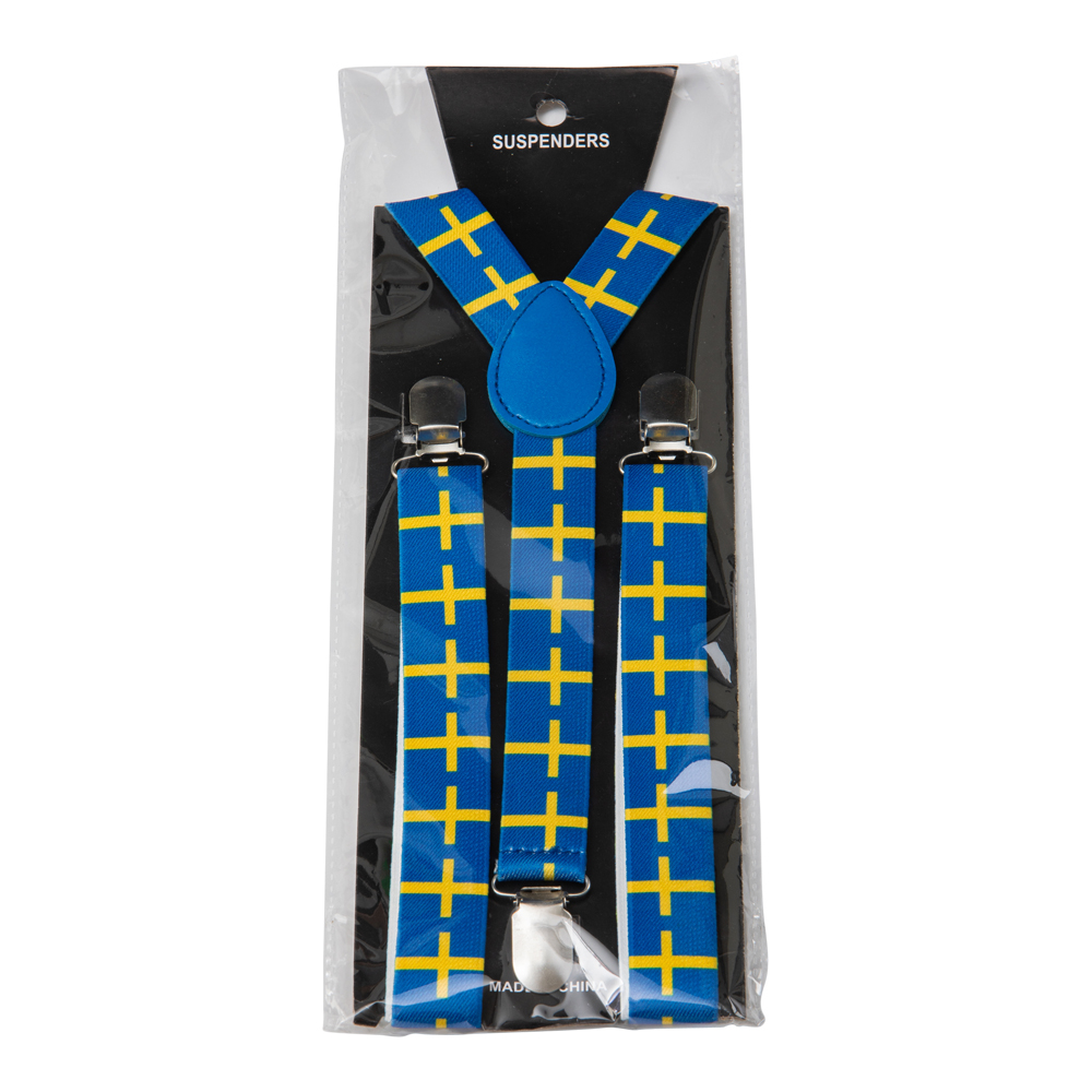 Visa ditt svenska hjärta på ett stilfullt och lekfullt sätt med dessa hängslen dekorerade med den svenska flaggan! Perfekta att bära under nationaldagen, midsommarfirandet, sportevenemang eller andra tillfällen där du vill visa upp din svenska stolthet. De här hängslena är mer än bara praktiska – de är en rolig och färgstark detalj som direkt lyfter din outfit och gör dig redo att heja fram Sverige med stil.