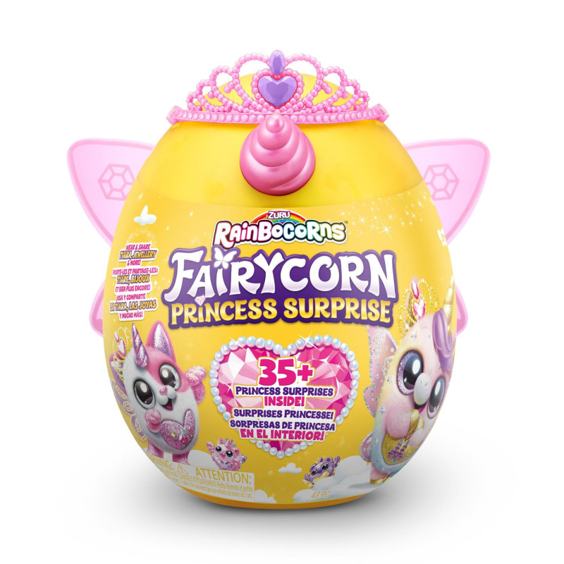 Upptäck ett hav av magi med RainBoCorns Fairycorn Princess Surprise, ett överraskningsägg fyllt med mer än 35 prinsessiga och roliga överraskningar. Varje ägg är en unik upplevelse och innehåller allt från ett mjukt fairycorn-prinsessdjur till pysselmaterial, tiara och vingar som du kan bära själv, vilket gör öppningen av ägget lika spännande som själva leken.