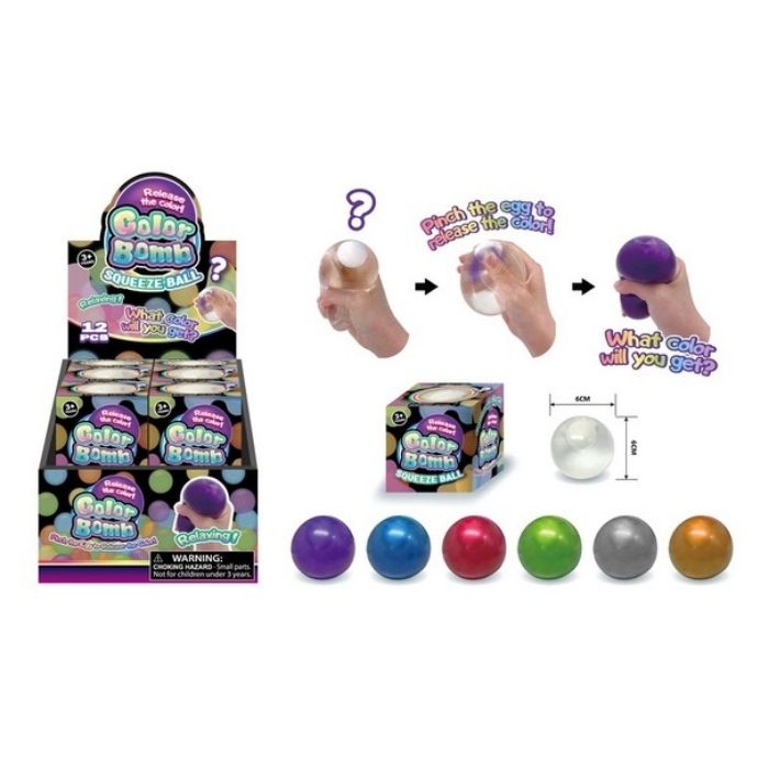 Upptäck en rolig och färgsprakande överraskning med Squeeze Boll Färg Bomb! Den här klämbollen ser först helt genomskinlig ut – men när du klämmer på den händer något spännande. Inuti finns en liten vit boll som spricker och färgar innehållet, så att du får fram en överraskande färg.