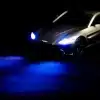 Bilen har framlyktor som lyser upp när du kör, vilket ger en cool effekt – särskilt i mörker. Med en längd på 18,5 cm och toppfart på 7 km/h passar den perfekt för både inomhus- och utomhusbruk.